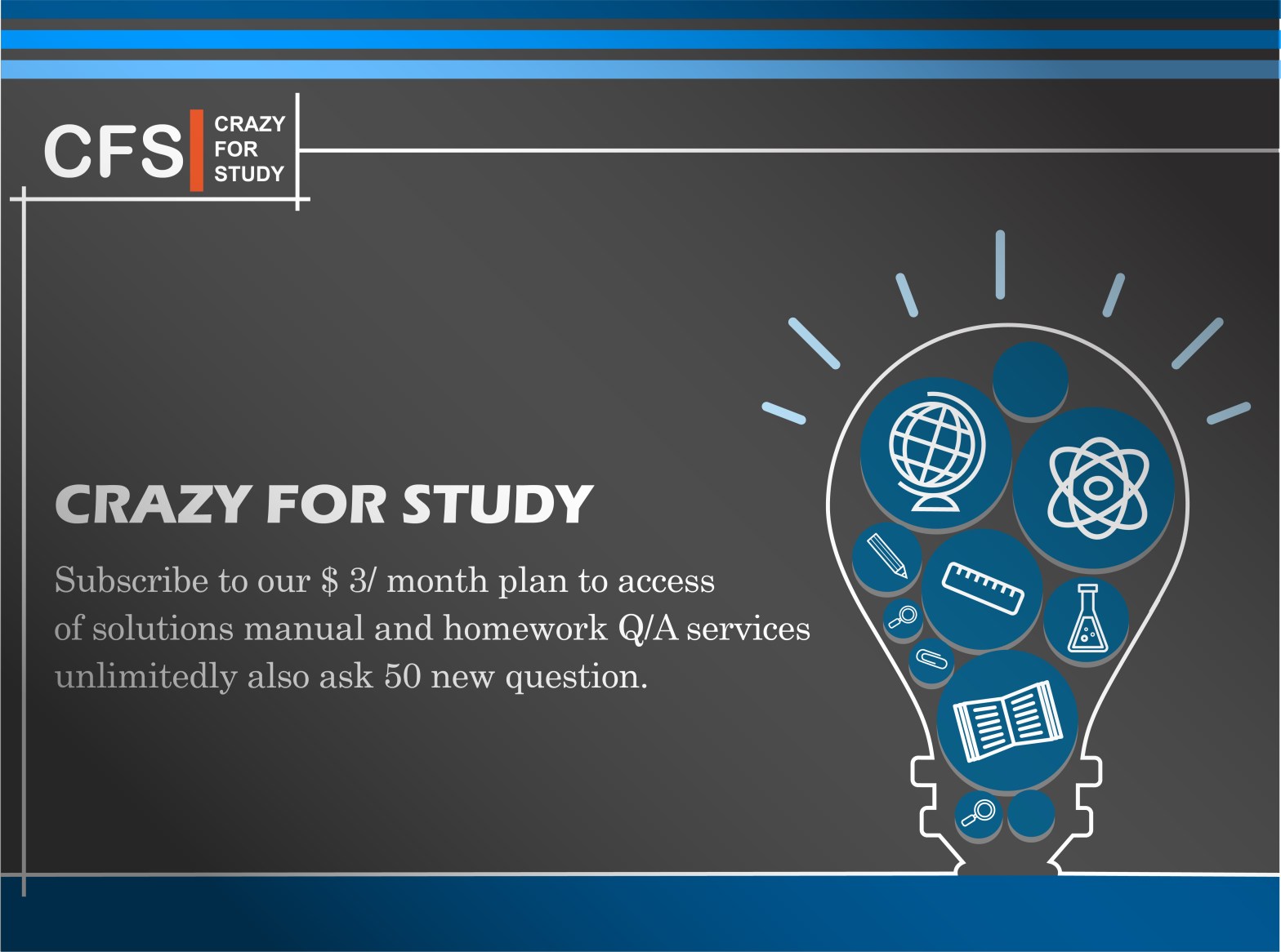 Textbook solutions are the solitary branch of learning, which provides an extra edge in learning. Collaborating with different educational boards, researching topics, working hard on the not-discussed topics and uploading textbook solutions for all subjects are the crucial job of academic search engines. Crazy for Study is one of the academic search engines that introduced $3 monthly subscription package to the students. The monthly subscription plan provides access to unlimited textbook solutions and unlimited access to millions of questions and answers available in Crazy for Study database. In addition, it also provides privilege to the students to ask 50 new questions every month. There are questions, which may not be able in textbooks or Q&As bank. Knowledge is vast and it has no limitation. Learners either fail or create half-assessed attempts to dig throughout the subject. That is why learners require Textbook Solutions Manual to help them.